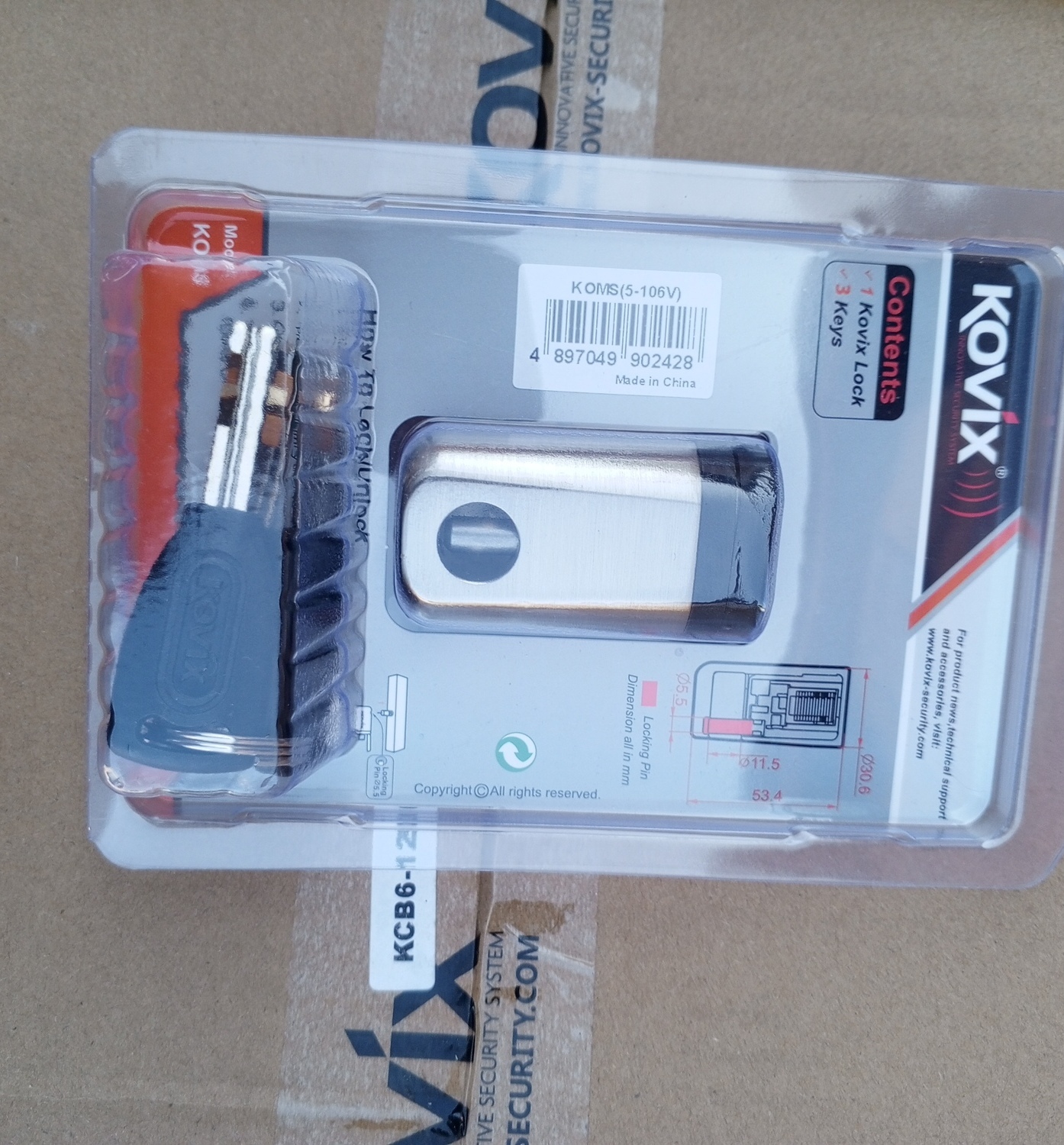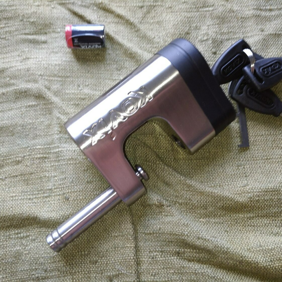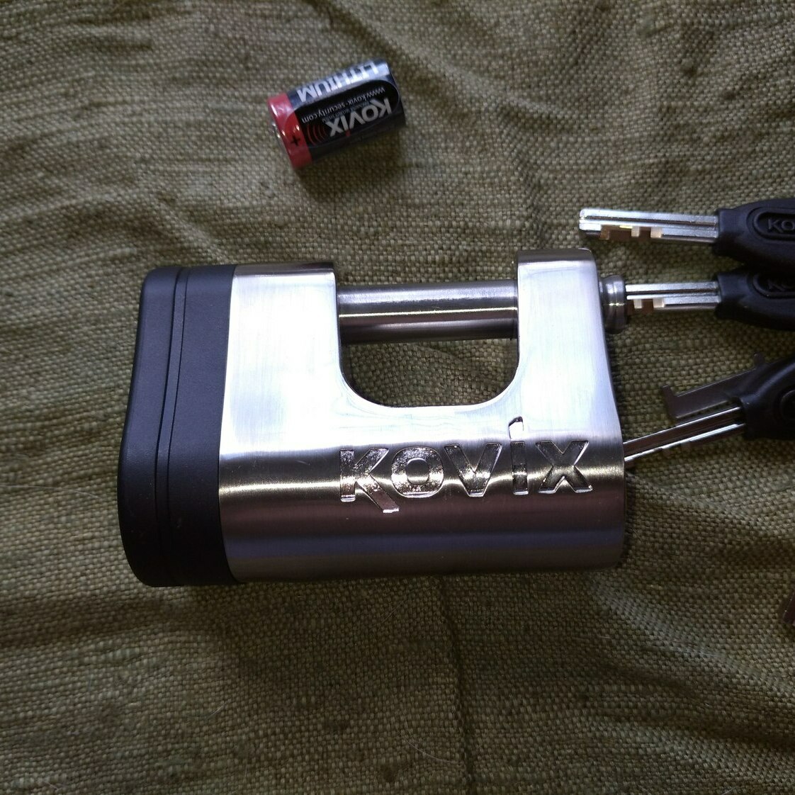 Замок с сиигнализациеей Kovix KBL - 12 Задвижка замка диаметром 12 мм, питание от батареи CR 2. Четыре ключа , ключик для установки батарейки и батарейка в комплекте